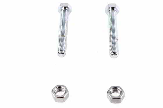 Chrome domed head rear axle adjuster screws includes nuts. Screws are 2-3/4 inch long from top to bottom with 2-3/8 inch coarse thread.