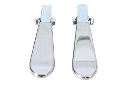 Chrome spoon footpeg set with a 5/8 inch x 1 inch block features 1/2 inch-20 threads. Set includes zinc mount block bolt.