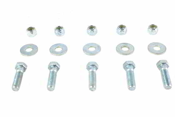 Zinc plated hex head bolt and washer kit includes bolts hardened washers and nuts used with spoke rear wheels.