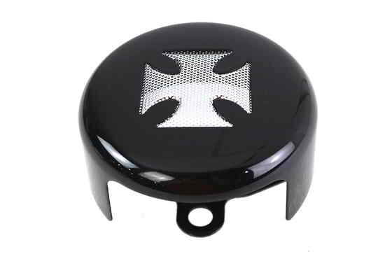 Horn cover is round style and features a black finish with a chrome maletese design.