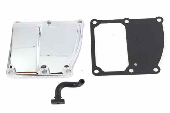 M8 transmission top cover kit features a chrome finish. Kit includes aluminum chrome foam coated gasket and vent hose.