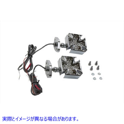 Chrome clear Maltese signal set with red LED and mount base. Base screw holes measure 1-3/8 inch center to center. *NOTE: For show or decorative use only and are not D.O.T. approved.