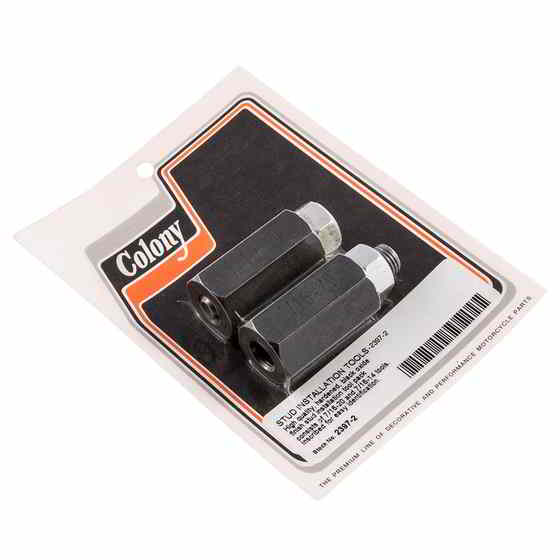 High quality hardened black oxide finished stud installation set includes 7/16 inch-20 and 7/16 inch-14 tools engraved for easy identification.