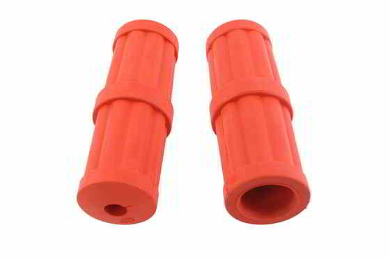 Orange Hillclimber rubber grip set with Beck logo features the original 1940's design for Spring Fork handlebars. Set includes 1 inch and 1-1/8 inch inner diameter grips featuring a 4 inch length.