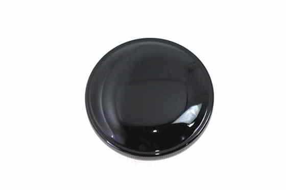 Black cap is made of steel and features a low pressure relief vent recessed in the cap to clear the filler neck vent tube on 1985 and later tanks for the right side. It is advisable to order caps in sets as they may not match the existing cap brand or style.