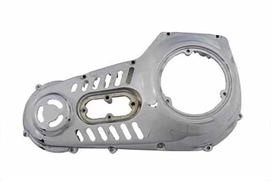 Factory sample chrome vented outer primary cover accepts 3 hole derby. *NOTE: Must order the bushing separately. Factory sample cover are brand new pre-production parts but have imperfections in the finished surface. Check threaded and bearing holes for excess plating before installation. There are no physical defects such as cracks or holes there will be cosmetic imperfections only. *Note: UPS may consider this part as packaged inchoversize inch for shipment as compared to the actual weight which will result in higher shipping costs.