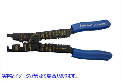 Spark plug wire tool strips 7 and 8mm ignition wires and crimps spark plug and distributor terminals.