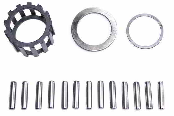 Includes standard size rollers and cages. Washers and snap ring are included for application.