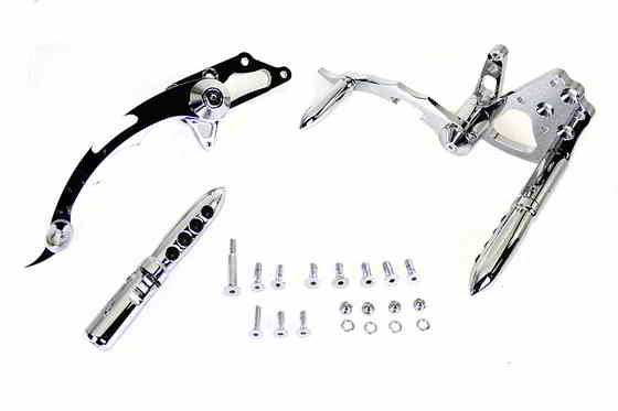 Custom chrome billet forward control kit requires use of the inline type master cylinder and fabrication of the shifter linkage. Includes footpegs and tribal cut control pedal.